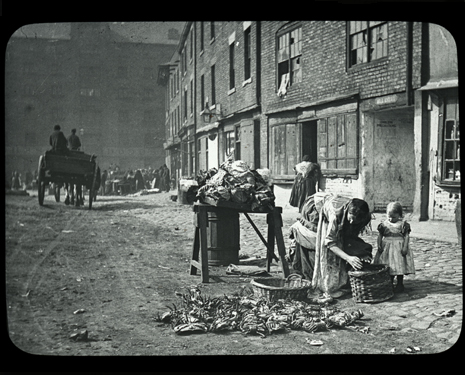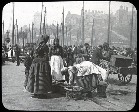 These photographs are just 6 examples of approximately 300 taken of the Quayside area of Newcastle, by photographer Edgar G. Lee. Beautifully clear, they allow us a rare glimpse into the lives of the poor and working class of the area in the late nineteenth century. Looking closely at some of the images, you can spot details that bring the picture to life; posters are ever-present warning of the importance of protecting against Cholera, infants walk the dirty cobbles bare-foot, and everything from fresh food to second hand clothes are available for sale from street traders.